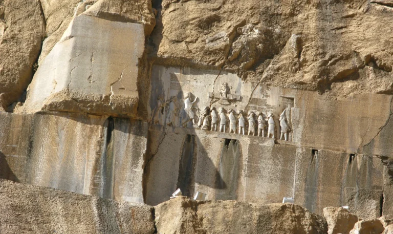 This tri-lingual inscription has 414 lines in Old Persian cuneiform, 260 in Elamite cuneiform, and 112 in Akkadian cuneiform (Bae: 2008). Copies of the text have been found elsewhere, notably in Babylon and Elephantine, Egypt. Accompanying a narrative scene in…